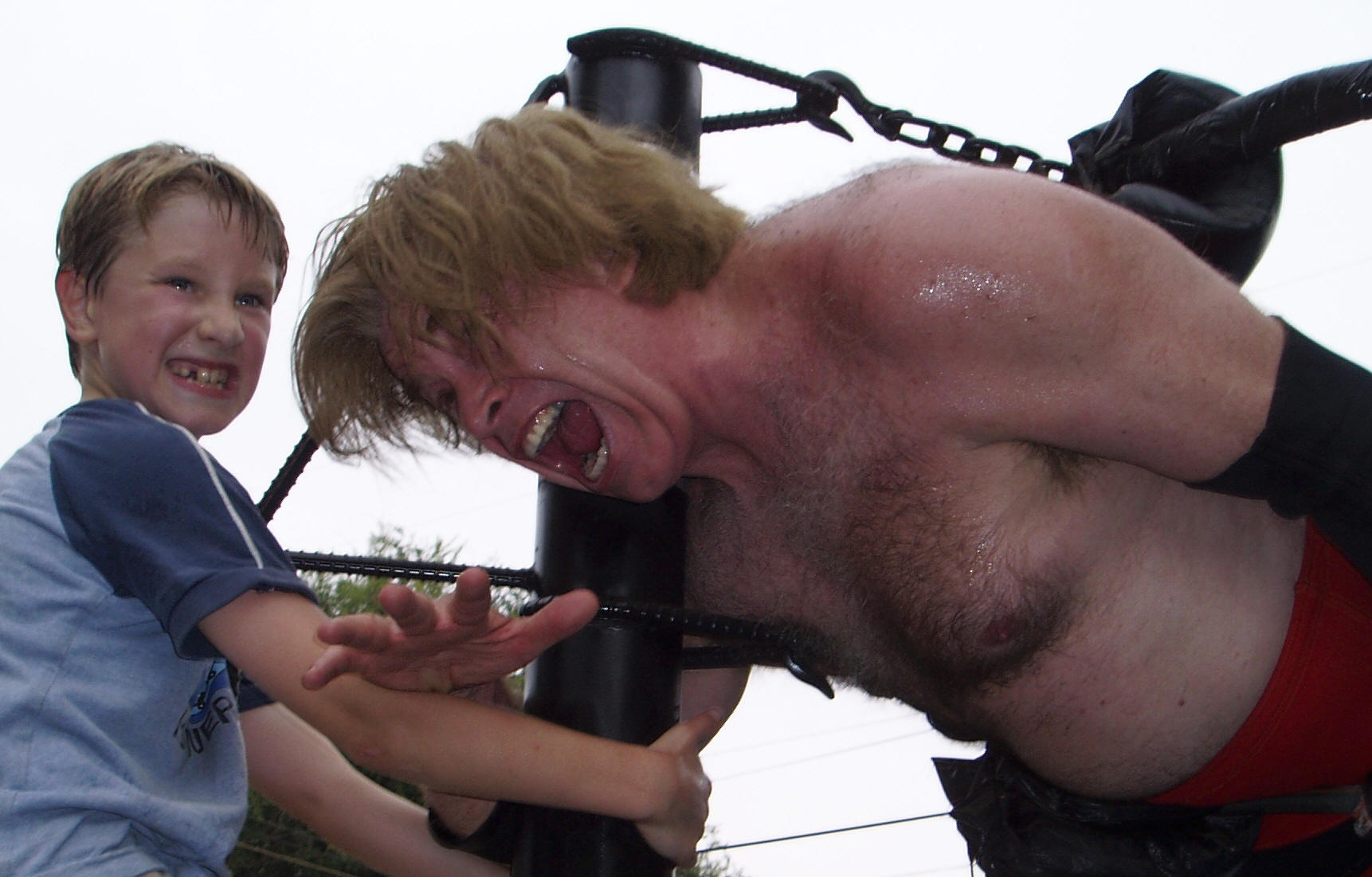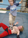 wrestling ring set up at his home. My son, Evan, was about